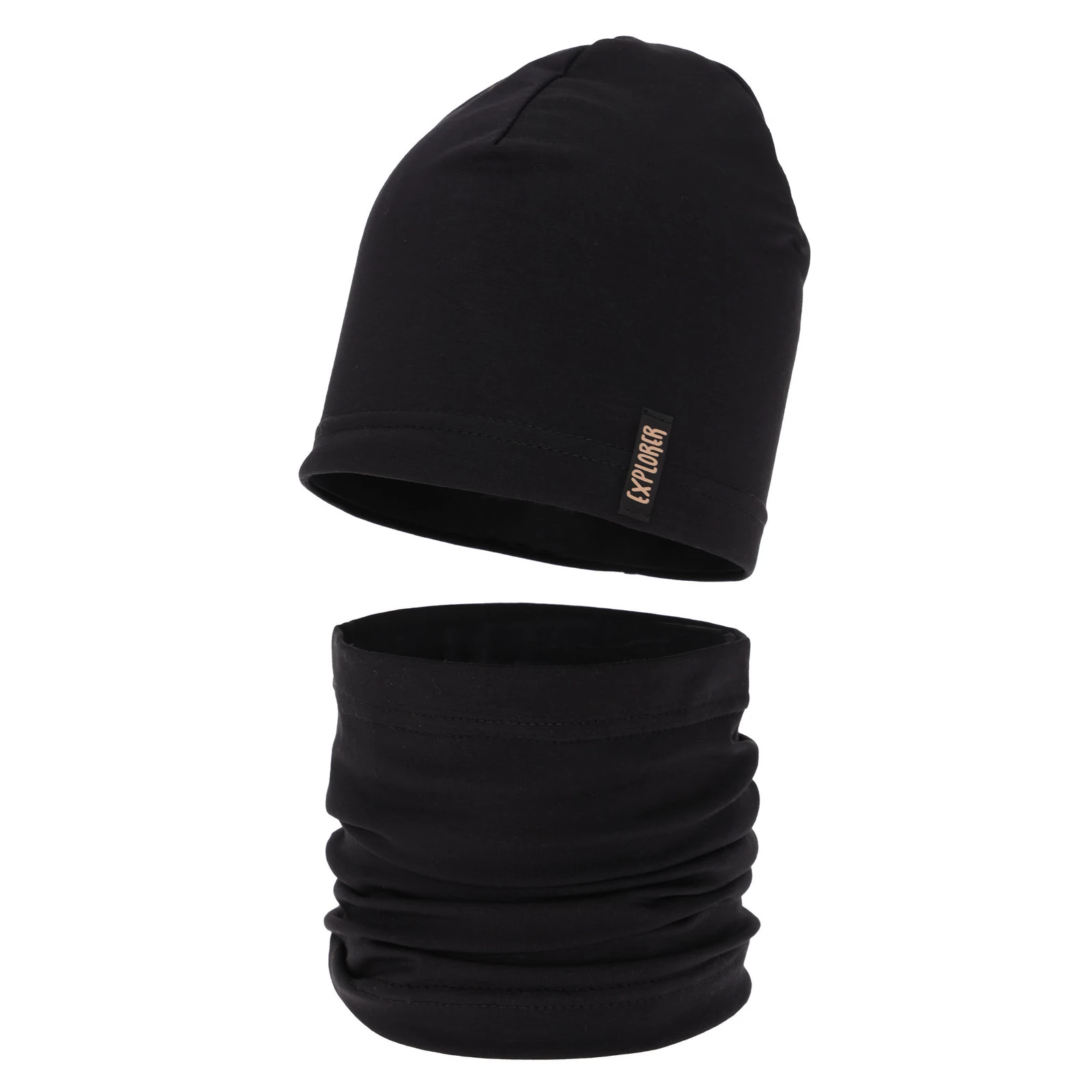 Herbst und Frühlingsset Jungen: Mütze und Schlauchschal Schwarz Hobart