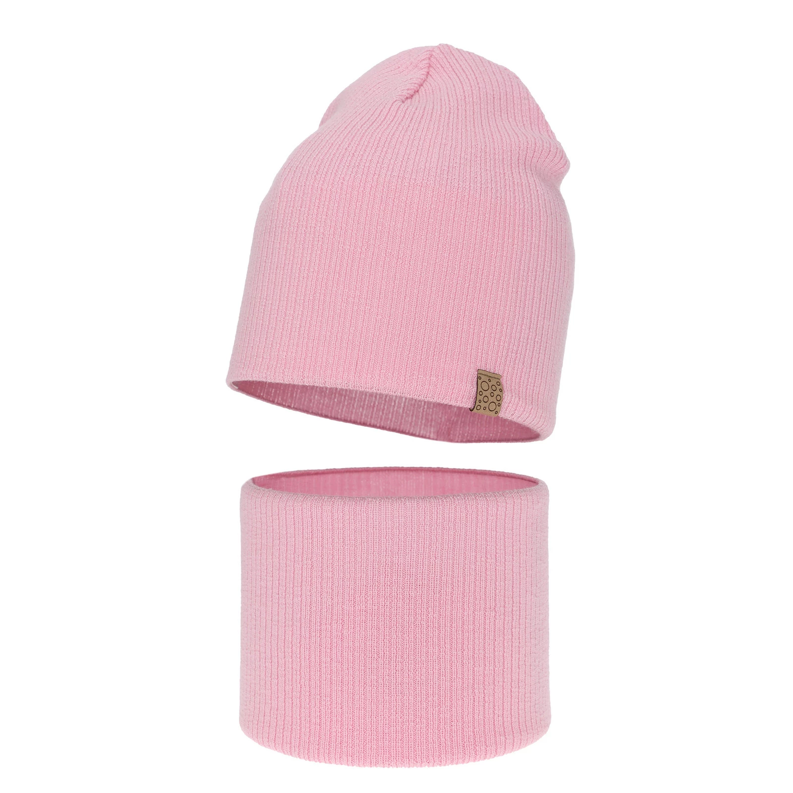 Herbst und Frühlingsset Mädchen: Mütze und Schlauchschal 100% extrafeine Merinowolle Rosa Ricona
