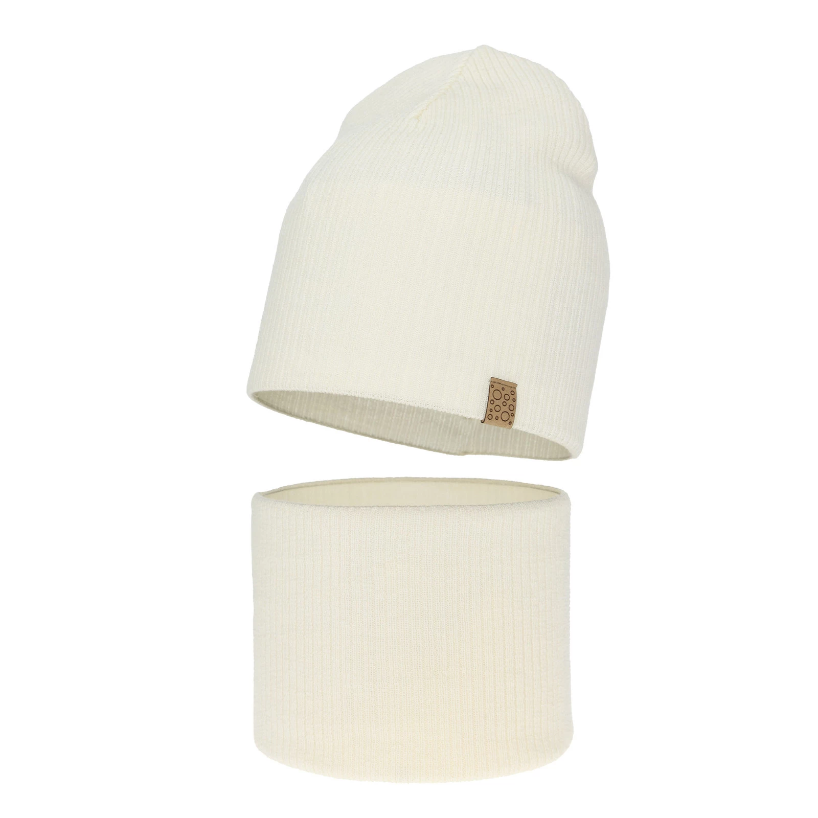 Herbst und Frühlingsset Mädchen: Mütze und Schlauchschal 100% extrafeine Merinowolle Cremefarben Ricona