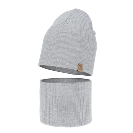 Herbst und Frühlingsset Mädchen: Mütze und Schlauchschal 100% extrafeine Merinowolle Grau Ricona