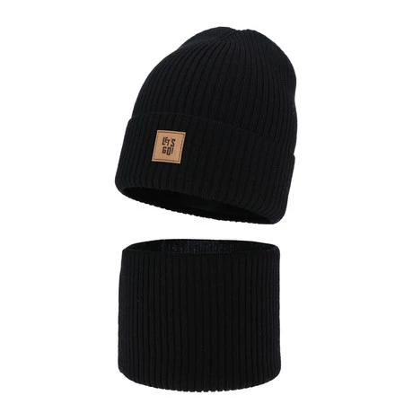 Herbst und Frühlingsset Jungen: Mütze und Schlauchschal 100% Merinowolle Schwarz Vanto