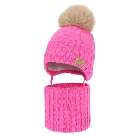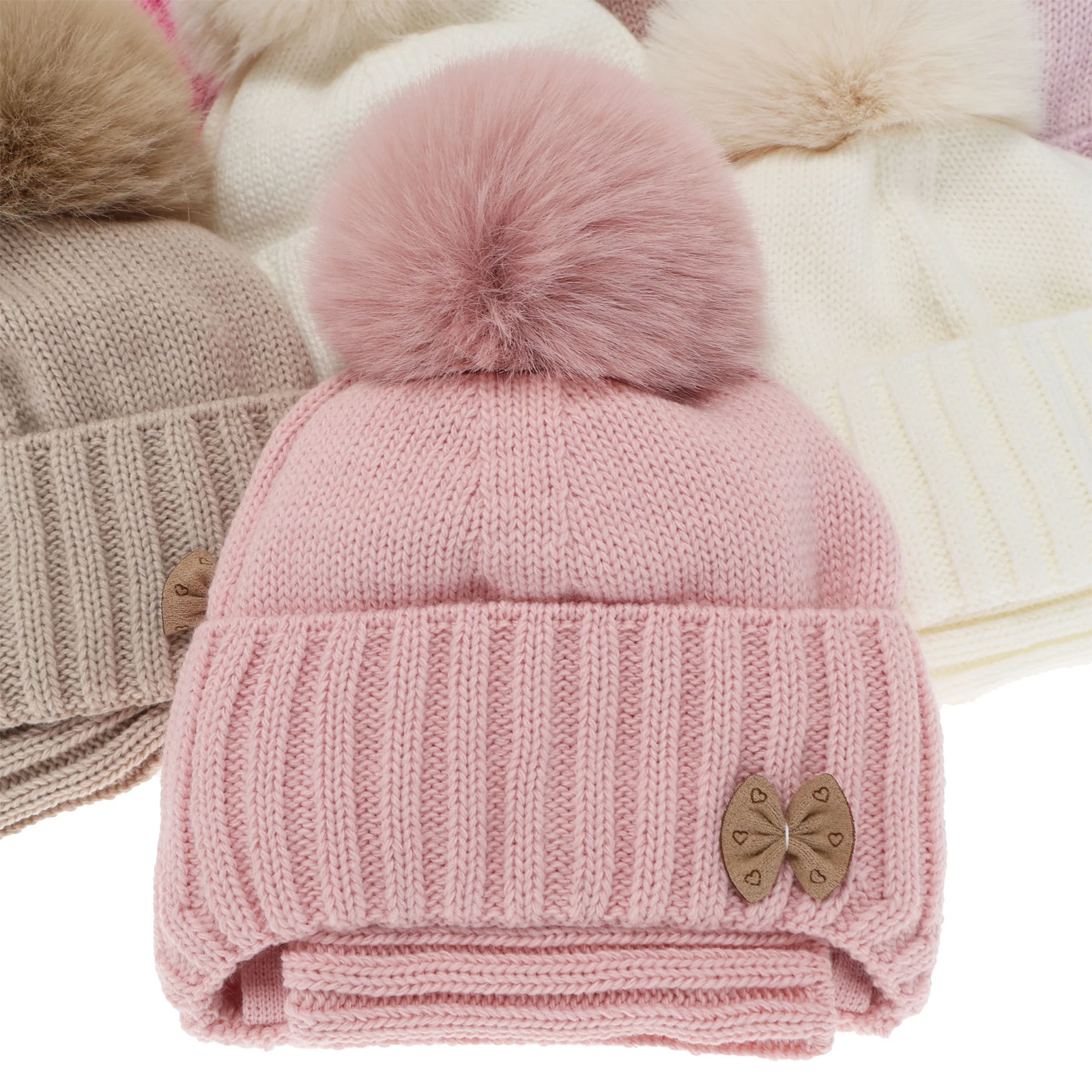 Winterset für Mädchen: Mütze und Schlauchschal mit Bommel in Rosa Talena