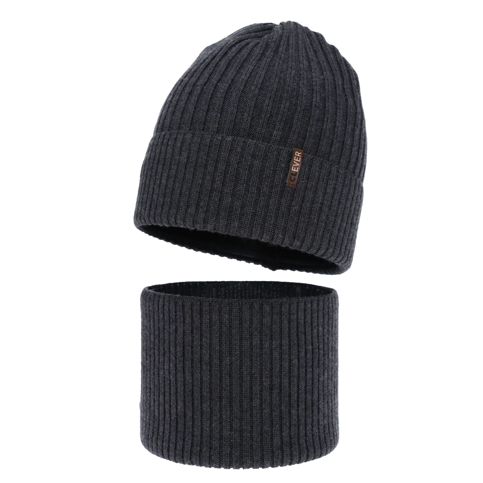 Winterset Jungen: Mütze und Schlauchschal, 100% Merinowolle, Grau, Gizmo