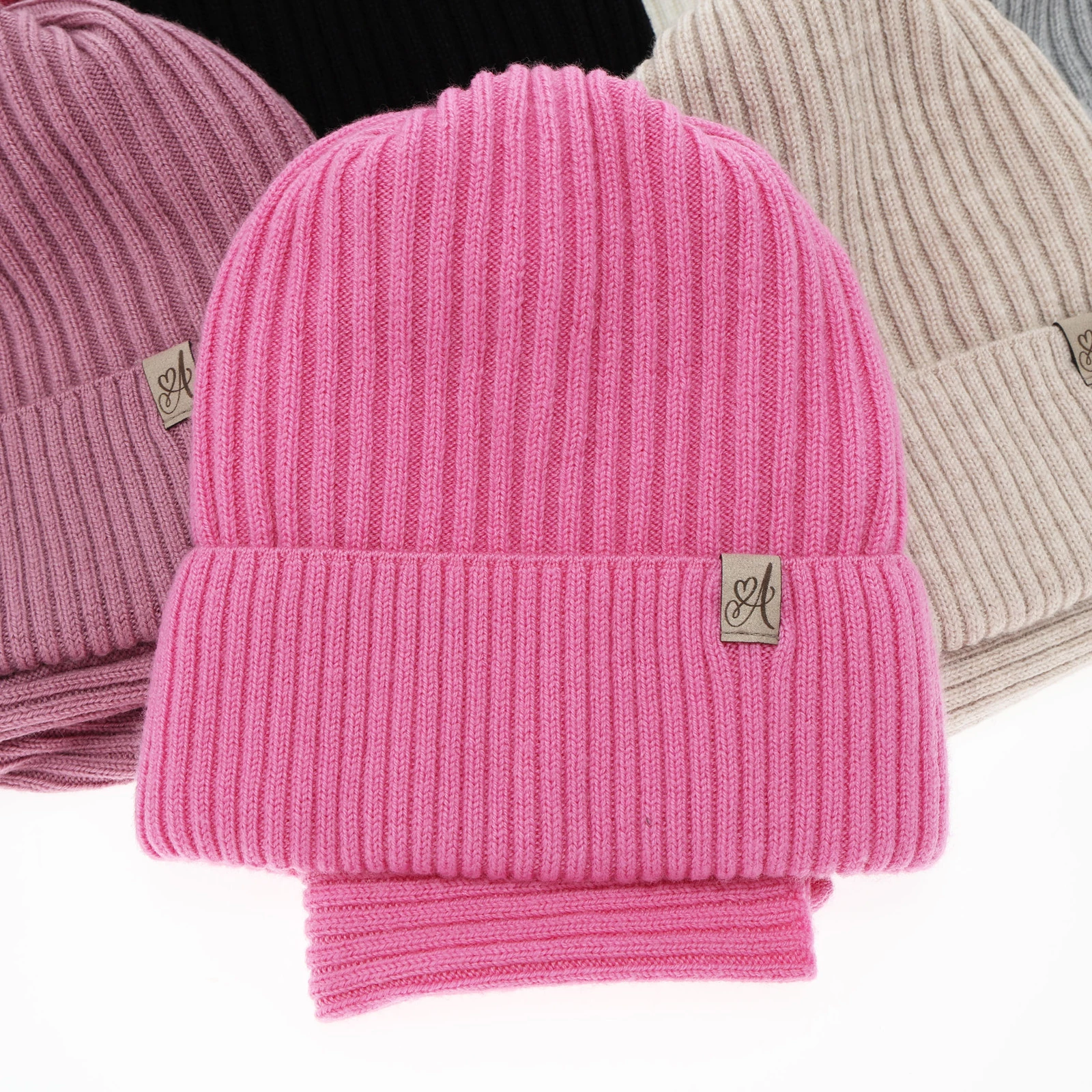 Winterset Mädchen: Mütze und Schlauchschal aus 100% Merinowolle, Rosa, Patricia
