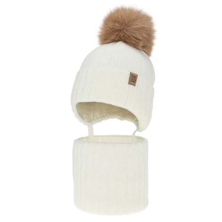 Winterset für Jungen: Mütze und Schlauchschal, mit Bommel, Cremefarben, Talens