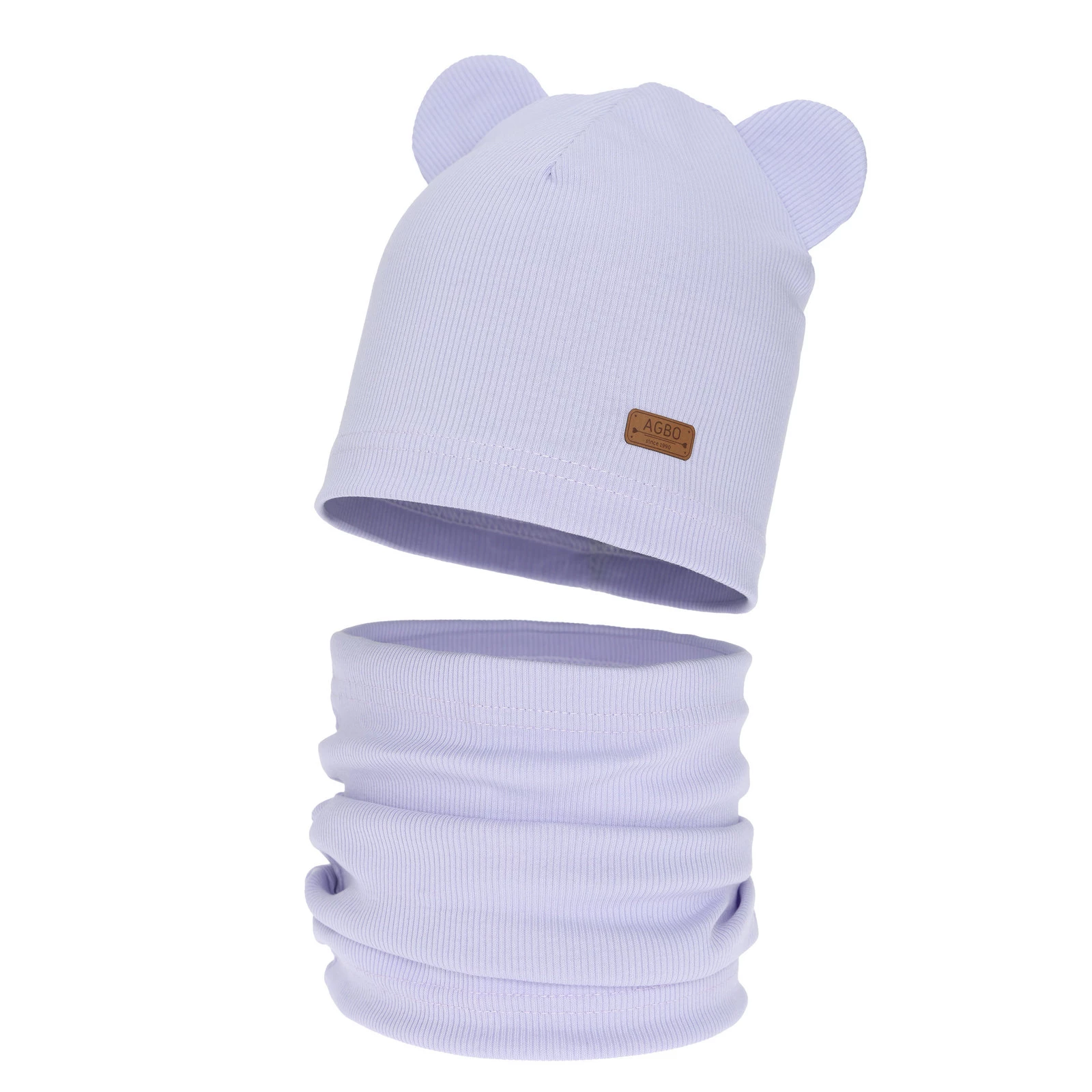 Herbst und Frühlingsset Mädchen: Mütze und Schlauchschal, Baumwolle, Violett Georgea