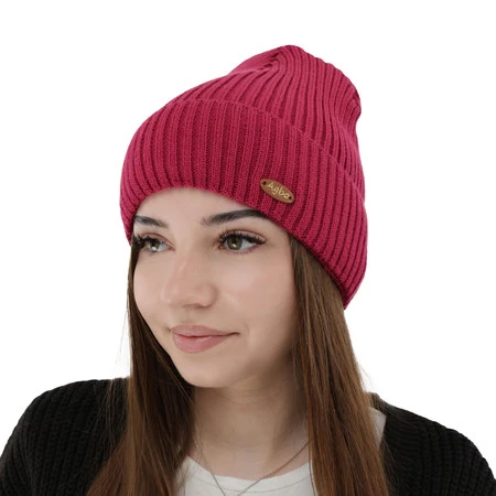 Damen Wintermütze, amarant, mit Merinowolle Shila