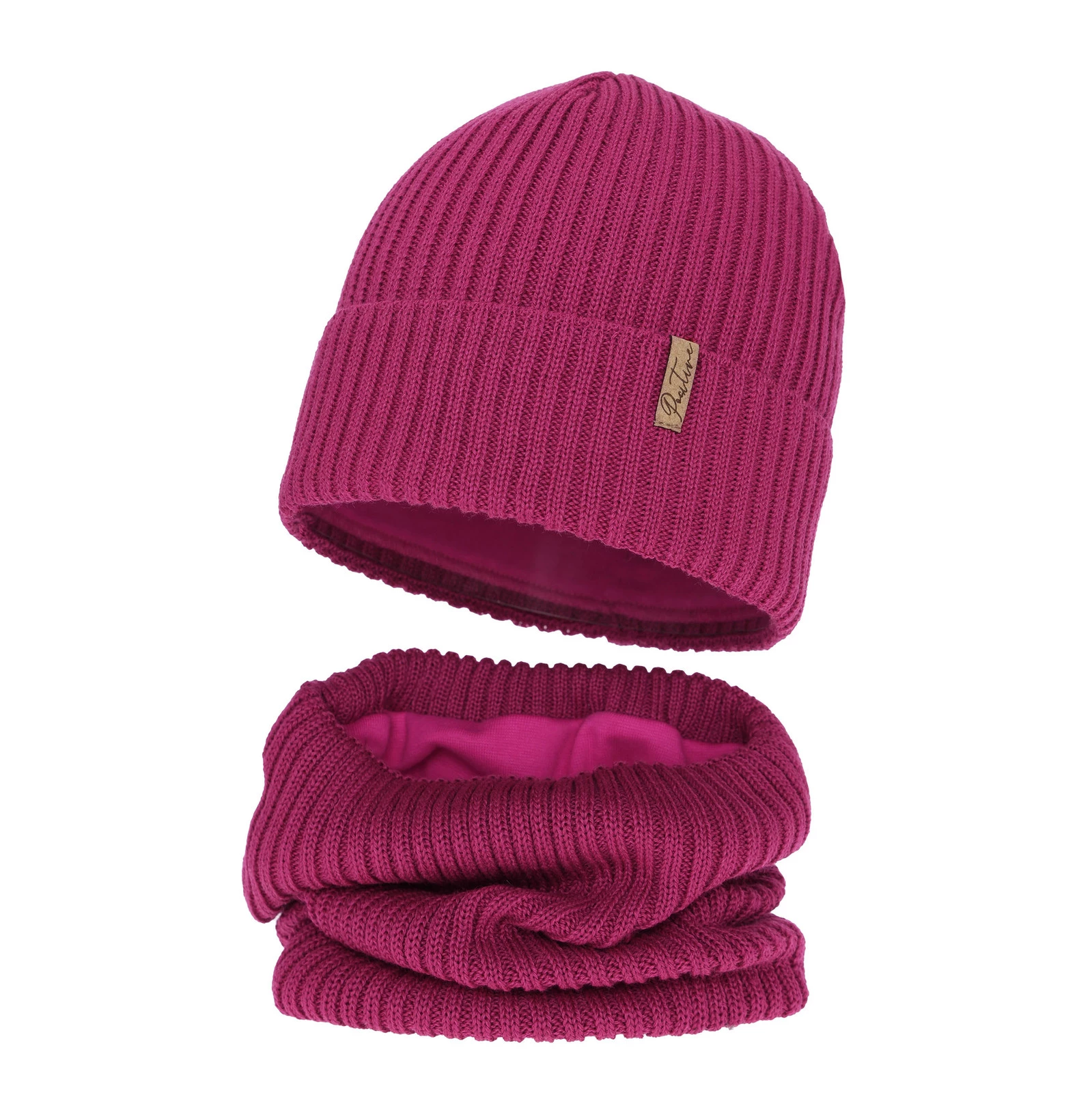 Mütze und Schlauchschal mit Fleecefutter für Mädchen Winterset, amarant, mit Merinowolle, Odette