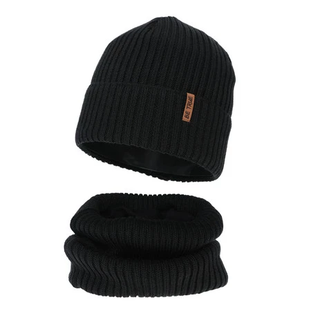 Winterset Jungen: Mütze und Schlauchschal, schwarz, mit Merinowolle, Colton