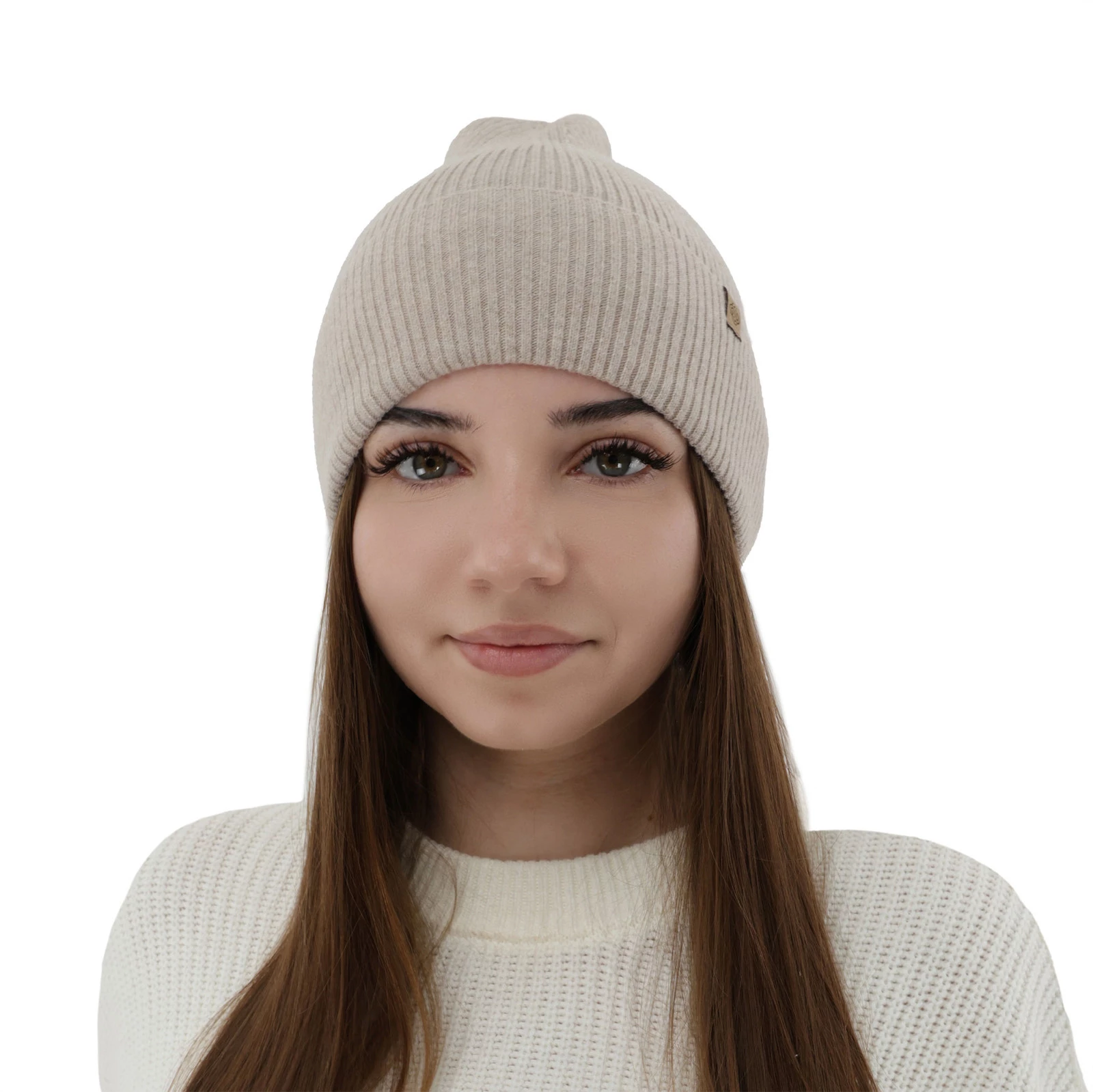 Herbst und Wintermütze Damen, hellbeige, mit Merinowolle und Kaschmir, Alineta
