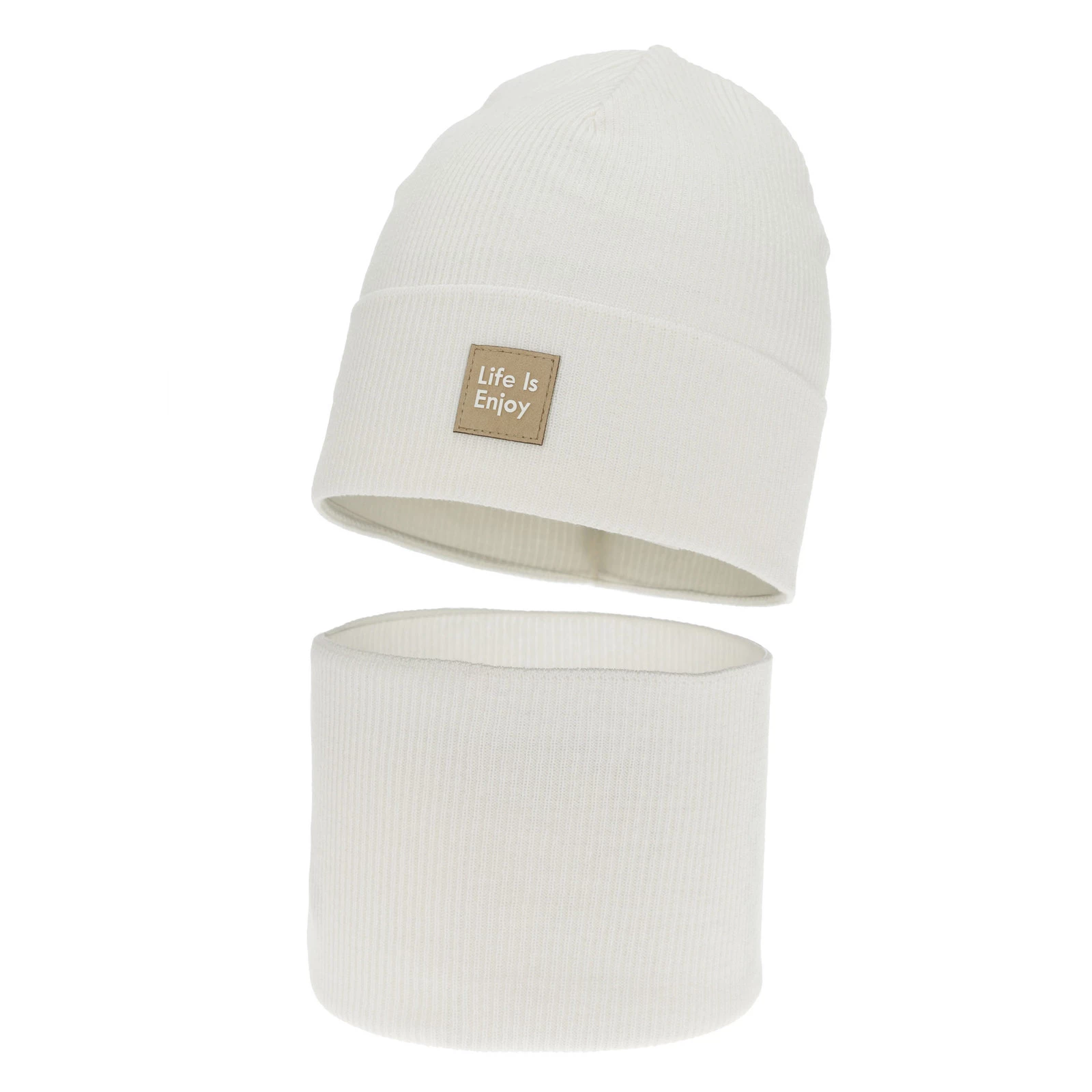 Herbst und Frühlingsset Mädchen: Mütze und Schlauchschal, mit Baumwolle, cremeweiß, Zola
