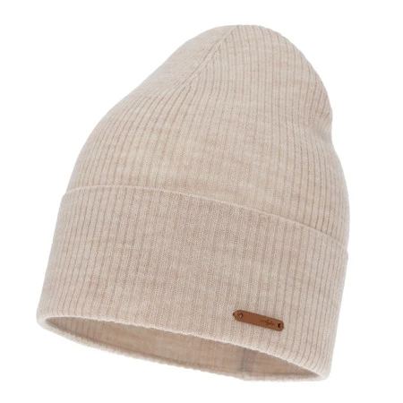Herbst und Wintermütze Damen, beige, 100% Merinowolle, Flerra
