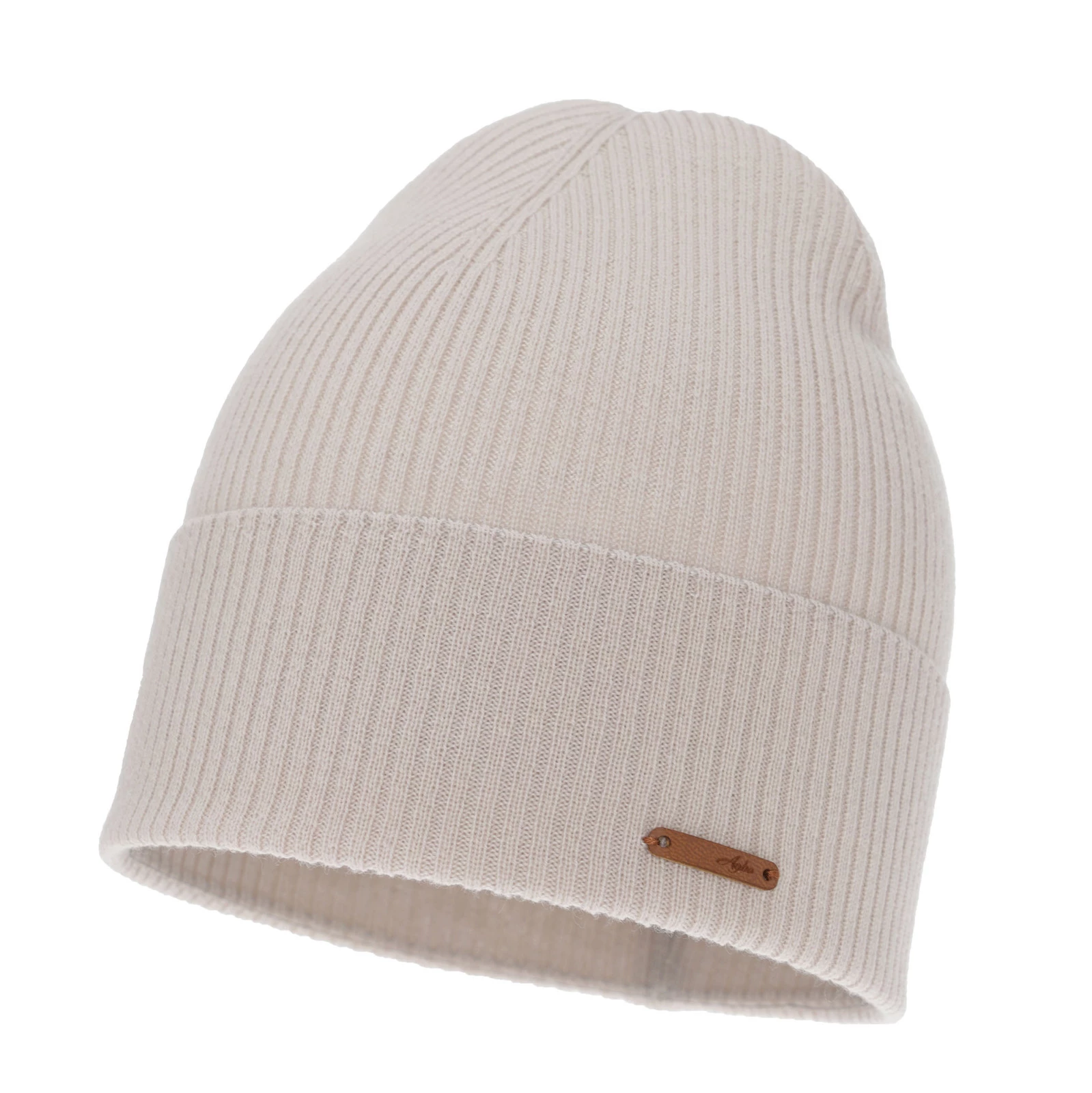 Herbst und Wintermütze Damen, beige, 100% Merinowolle, Flerra