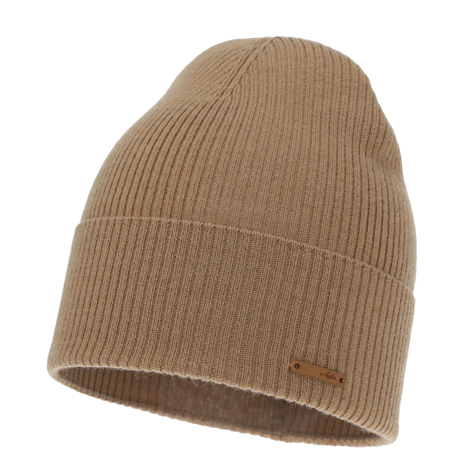 Herbst und Wintermütze Damen, camel, 100% Merinowolle, Flerra