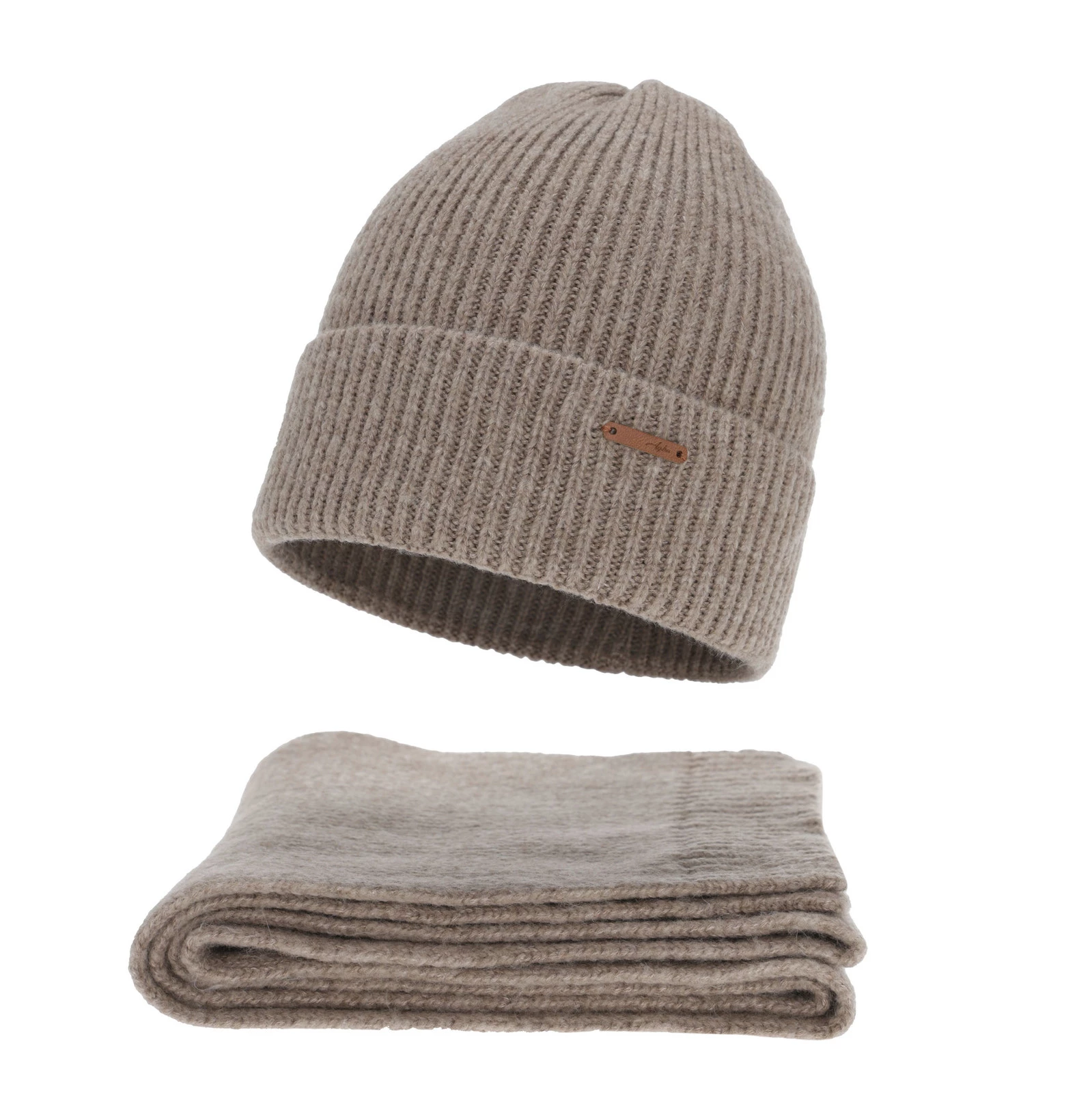Winterset Damen: Mütze und Schal, Winter, dunkelbeige, mit Merinowolle, Seala