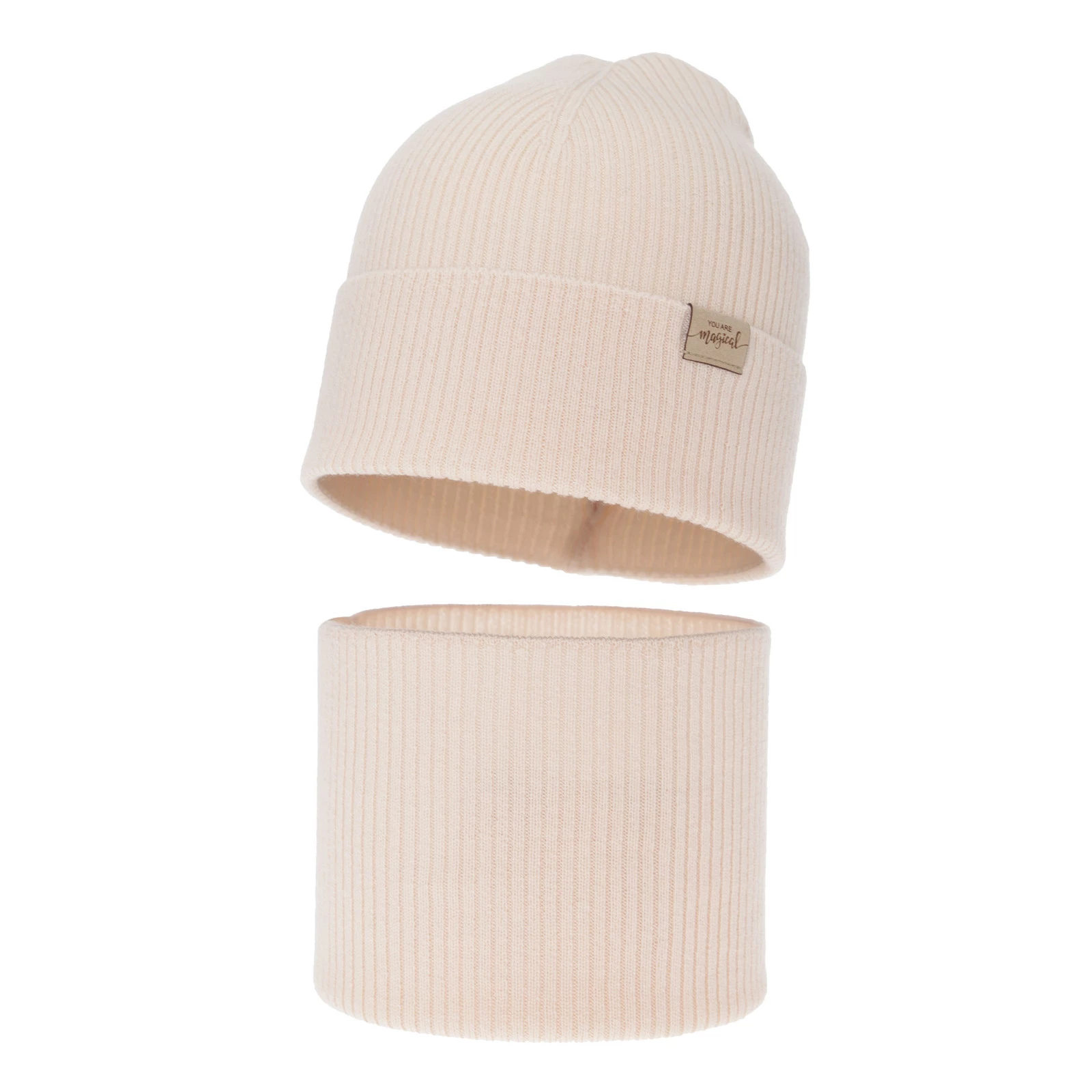 Herbst und Frühlingsset Mädchen: Mütze und Schlauchschal, hellrosa, 100% Merinowolle, Magenta