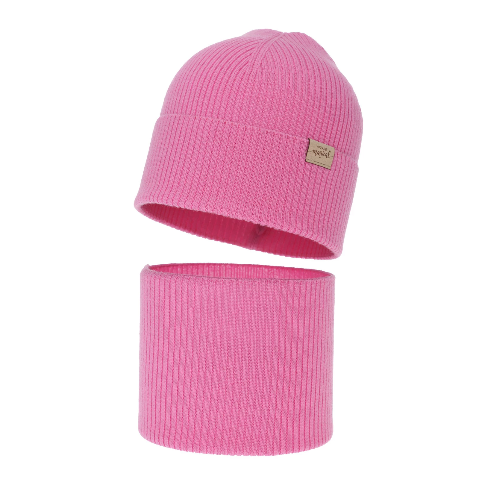 Herbst und Frühlingsset Mädchen: Mütze und Schlauchschal, rosa, 100% Merinowolle, Magenta