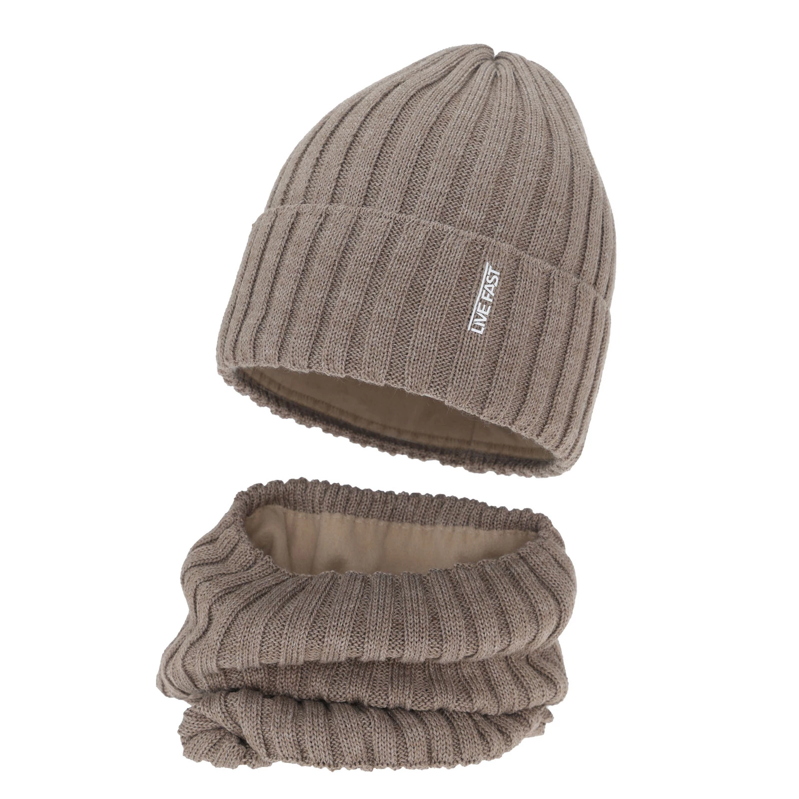 Winterset Jungen: Mütze und Schlauchschal, Winter, beige, mit Merinowolle, Fleecefutter, Banasko