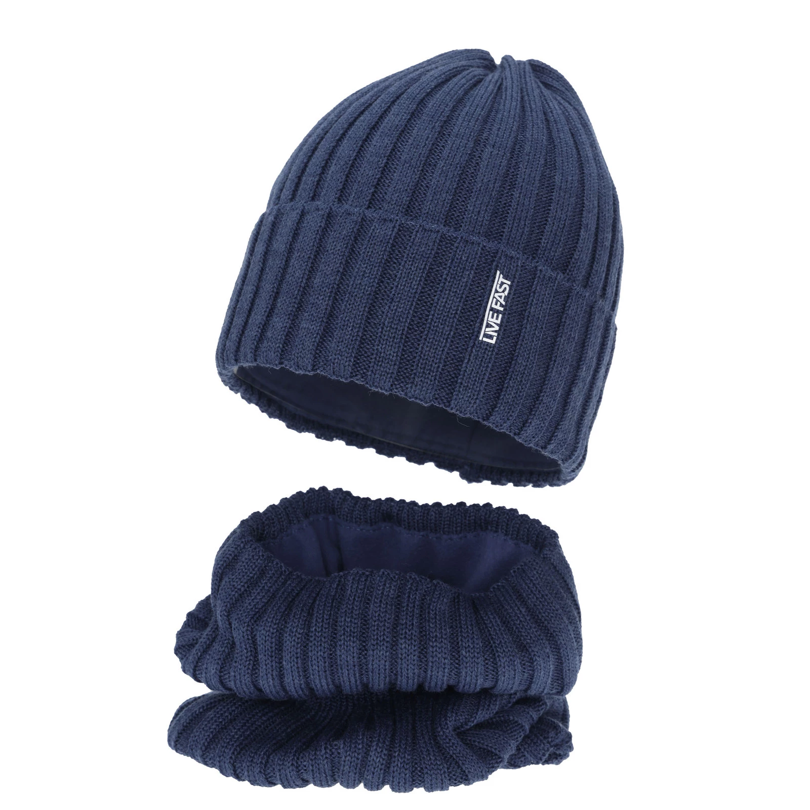 Winterset Jungen: Mütze und Schlauchschal, blau, mit Merinowolle, Fleecefutter, Banasko