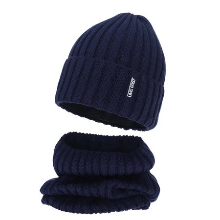 Winterset Jungen: Mütze und Schlauchschal, Winter, granatowy, mit Merinowolle, podszyty polarem, Banasko