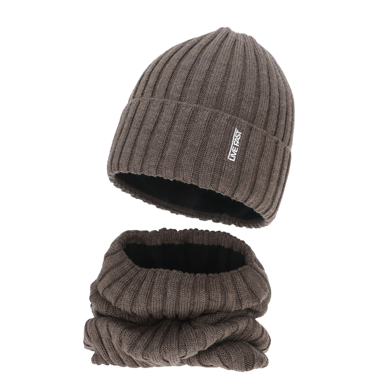 Winterset Jungen: Mütze und Schlauchschal, hellbraun, mit Merinowolle, Fleecefutter, Banasko