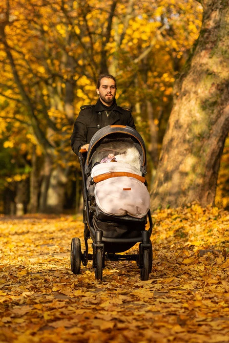 Der Schlafsack passt in tiefe Kinderwagen, Buggys und Schlitten. Es hat auch Löcher für 5-Punkt-Gurte, mit denen Sie Ihr Kind sicher befestigen können.