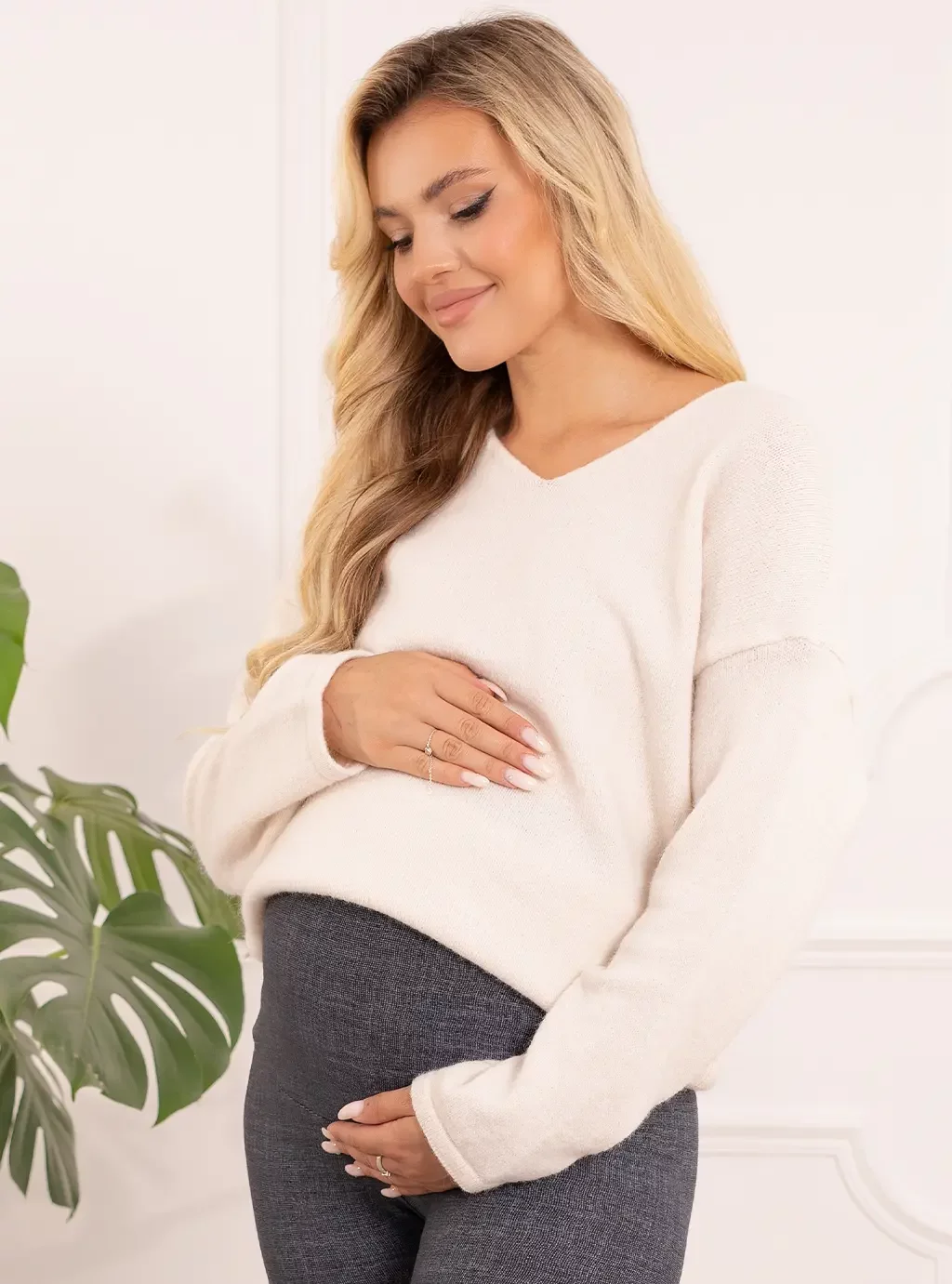 Investieren Sie jetzt in bequeme Pullover für kältere Tage oder Winterabende. Der perfekte Langarmpullover mit dem Zusatz von warmer Wolle ist ein Volltreffer! während der Schwangerschaft, aber auch für die Zeit davor und danach. Ein weicher Ecru-Pullover ist ein typischer Freizeitstil und kann Sie in jeder Phase der Schwangerschaft begleiten, denn klassische Pullover sind ein Modell, das nie aus der Mode kommt und als lockerer Umstandspullover für werdende Mütter erfolgreich dienen kann. Stilvolle Damenpullover passen zu Jeans oder Röcken und ersetzen in jeder Phase der Schwangerschaft die klassische Umstandsmode.