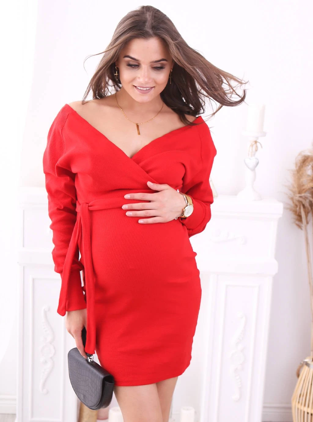 Sukienka Amanda to element garderoby jaki każda kobieta w ciąży oraz po jej rozwiązaniu powinna mieć, dlatego że posiada funkcję karmienia. Jest to propozycja dla kobiet ceniących sobie zarówno wygodę jak i elegancję. Ciąża to piękny, ale i wymagający czas w którym komfort noszenia odzieży ciążowej jest niezwykle ważny. Sukienka Amanda wykonana została z przyjemnego dla ciała materiału, który idealnie dopasowuje się do ciążowych krągłości. Amanda to sukienka o nowoczesnym kroju, która doskonale sprawdzi się na eleganckie wyjścia jak i pobyt w domu. Piękny czerwony kolor dodaje szyku tej sukience, a trójkątny dekolt na zakładkę umożliwiający odsłonięcie ramion pozwala poczuć się kobiecie niezwykle seksownie. Dodatkowo tak zaprojektowana góra sukienki jest niezwykle funkcjonalna, ponieważ pozwala na swobodny dostęp do piersi w trakcie karmienia maluszka. Sukienka przewiązywana jest w talii paskiem co w fantastyczny sposób podkreśli ciążowy brzuszek.